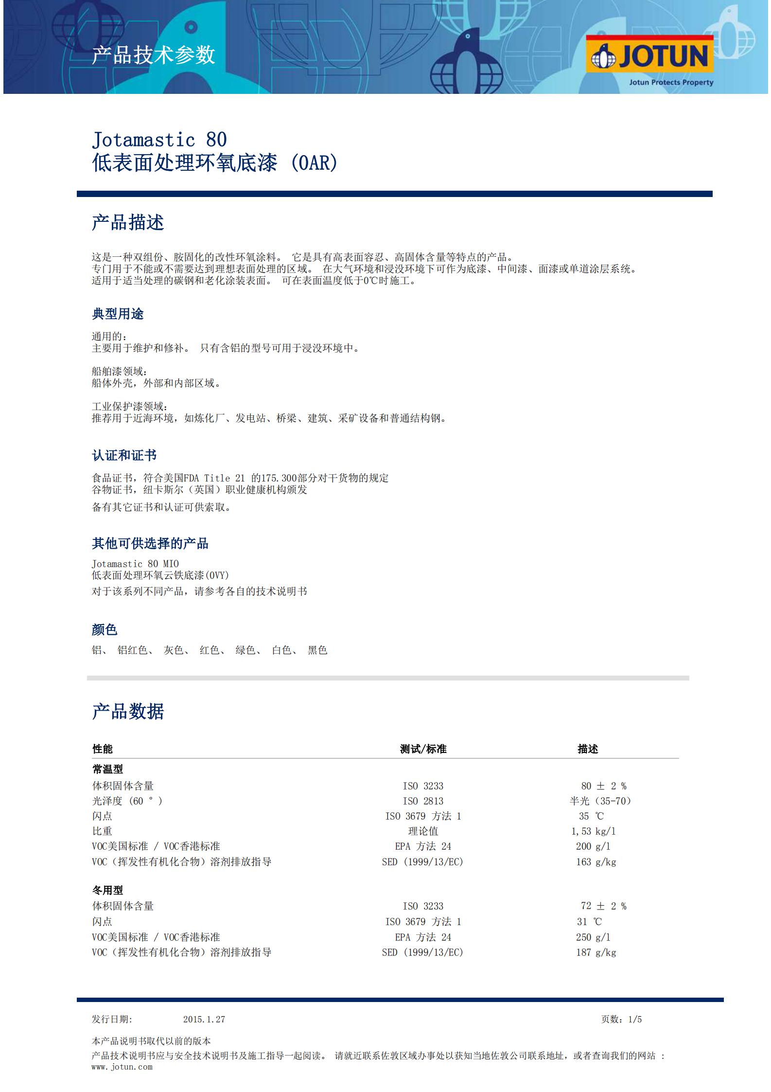 TDS-Jotamastic+80-低表麵處理環氧底漆