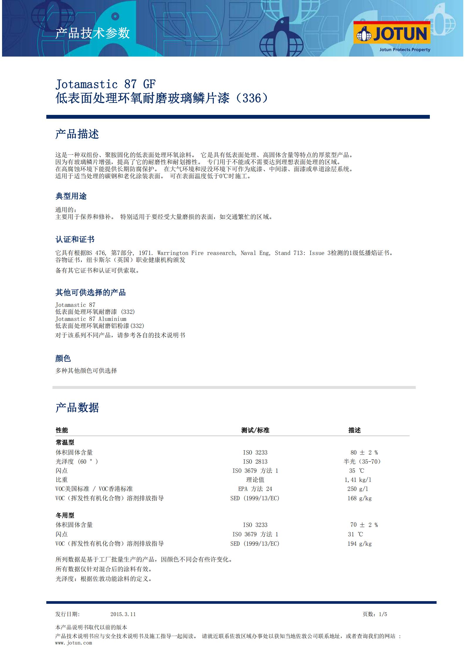 TDS-Jotamastic+87+GF-低表麵處理環氧耐磨玻璃鱗片漆